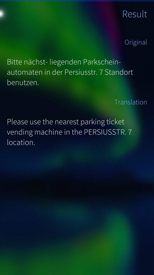 ...and get a translation! (Beta) ...and get a translation for all the text on the picture! This one requires an internet connection and is powered by Microsoft Azure Cognitive Services