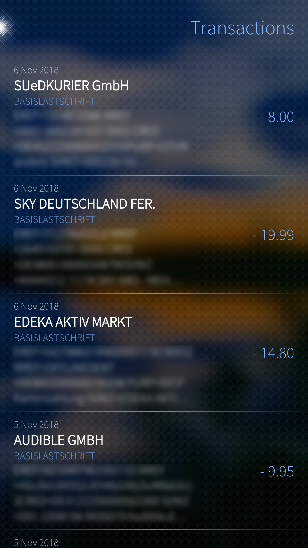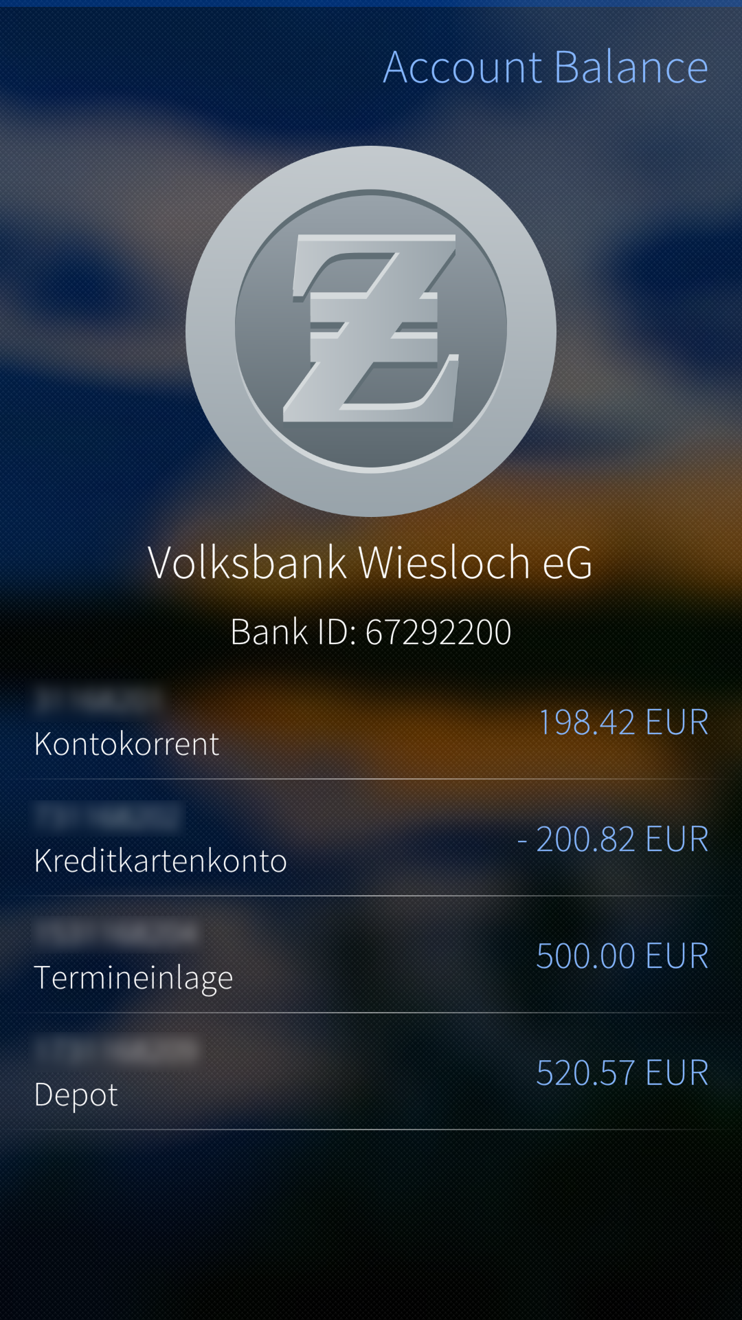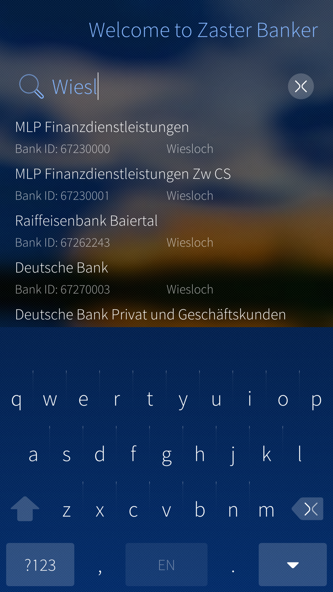 No complex searching for backend API URLs, your bank ID (BLZ) or other things. Just use your bank's name (or only parts of it), select your bank from the search results and Zaster Banker automatically finds all parameters for you automatically.
